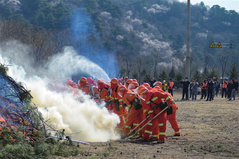 随着春季防火季到来,3月29日,迎泽区森林防火指挥部、太行山国有林管理局东山实验林场开展森林灭火联合实战演练 。此次演练以“练指挥、练能力、练战术”为目的,确保发生森林火灾后能以最快的速度、最短的时间、最有效的措施进行扑灭。 牛利敏 摄