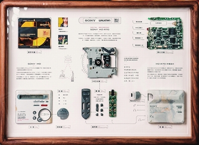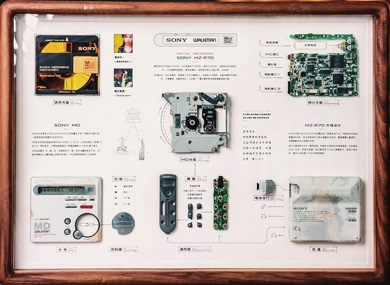 林西从自己的旧物开始做实验,找到了以前的iphone 4手机和PSP游戏机,对照着网上的拆解视频开始动手,并且很顺利地设计了排版。“我想把这一想法变成自己的爱好,再把爱好做成小生意,直到现在开了这间工作室。”基于之前的旅游博主粉丝群体,林西发布拆解装裱的视频之后,火速引起了粉丝的兴趣。她最初设计了五个排版的装裱样式公布在网上,几天时间便收到了200多个订单,最后用了半年时间才将订单一一完成。