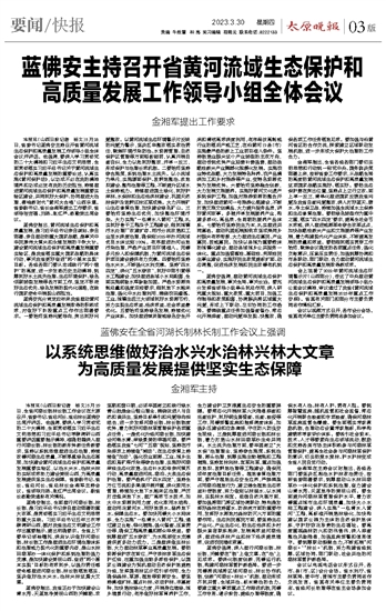 蓝佛安主持召开省黄河流域生态保护和高质量发展工作领导小组全体会议