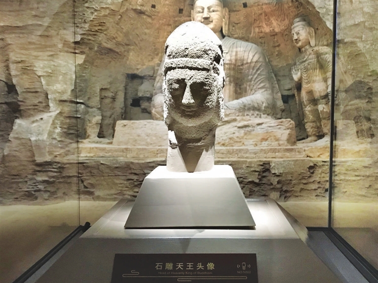 “佛风遗韵”展厅,新增海外回归文物,包括重量级的邓峪石塔和云冈石窟石雕天王头像。