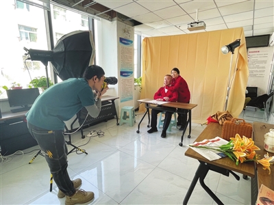 “这一下起码年轻了20岁!”刘大爷是和老伴携手来的,他满眼笑意地说:“我们相携相伴走过了几十年,却一直没有一张像样的合照,这次社区也是为我们老两口圆梦了!”