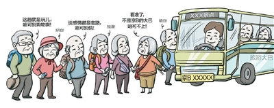 7点40分,一辆旅游大巴缓缓停靠在路边。在此等候的老年人陆续上了车,张阿姨笑着跟记者说再见,她说:“玩了这么多趟,感觉都还不错。如果遇到问题,一定要投诉。我们啊,都挺有头脑的!”