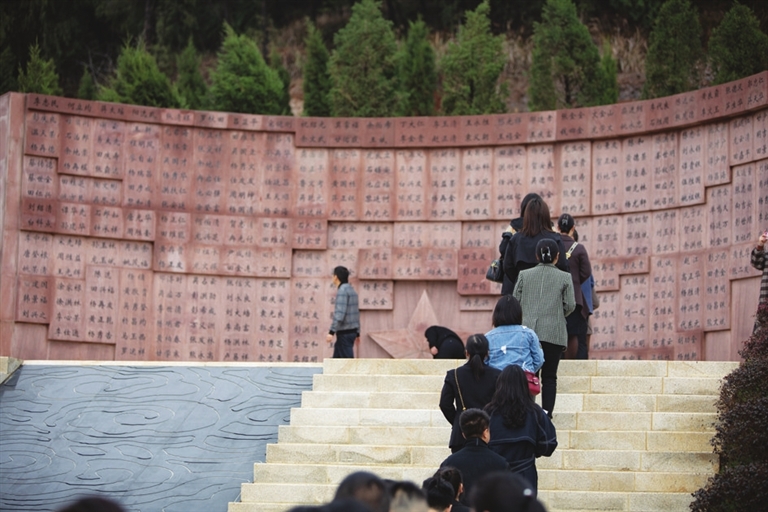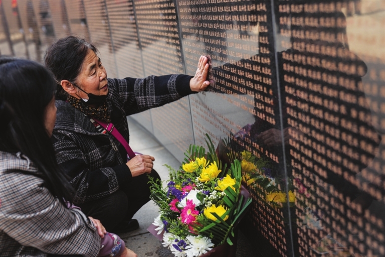 4月3日,在重庆市秀山土家族苗族自治县烈士陵园,人们在英名墙前献花瞻仰。