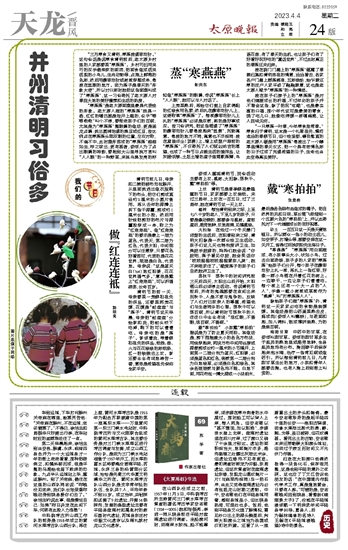 “一只寒燕一叶春,今年寒食胜常春。”寒食归于清明,这本是一个礼敬祖先、慎终追远的春祭节日,但个性坚韧、善良憨直的老太原人硬是用“寒燕燕”悬挂出了一个醇厚温情的春天仪式,把一个具有悲情色彩的日子过成了充满希望的日子,生命也由此变得真实美好。
