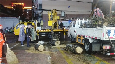 当日下午4时许,桃园二巷南社区网格员张志君,冒雨在辖区内巡查时,发现杏林四条便道上一棵水桶粗细、近十米高的行道树发生严重倾斜,随时都有可能倾倒,存在安全隐患。发现情况后,她一边提醒路人绕行,一边通知社区前来处理。很快,社区工作人员赶到现场,在行道树周围拉起警戒线,并通知园林部门。不多时,园林部门工作人员携带专业工具赶到现场,对倾斜的行道树进行处理。晚8时许,在园林部门工作人员和社区工作人员的共同努力下,树被锯断运走,道路恢复正常。