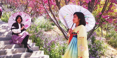 4月4日,春雨细如尘,杏林七条的海棠花瀑在太原市民的朋友圈里疯狂刷屏。这里的海棠花树高大茂盛、繁花烂漫,来拍照打卡的人络绎不绝。孙女士住在桃园三巷,海棠花开的时候,她喜欢在街边的咖啡馆闲坐读书,累了就抬眼赏花,“这里文艺气息和老市井气息浓厚,很适合感受慢生活时光。”