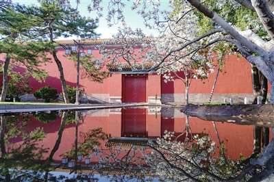 太庙 这是玉兰花映衬下的太庙一角。太庙始建于明永乐十八年(1420年),占地19.7万平方米,是明清两代皇帝祭祀祖先的场所,是我国现存最完整、规模最宏大的皇家祭祖建筑群。