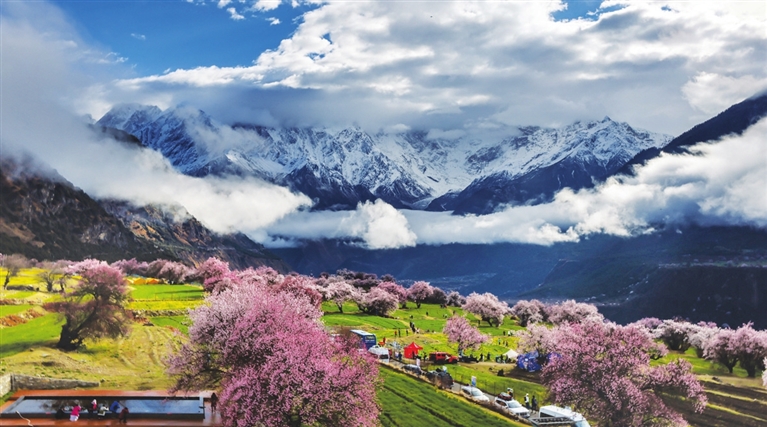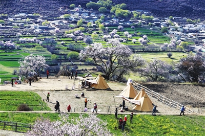 索松村位于雅鲁藏布江畔的一处半山腰,面对南迦巴瓦峰,有成片的桃林。旅游业是索松村农牧民重要的经济来源,全村共有30家家庭旅馆。