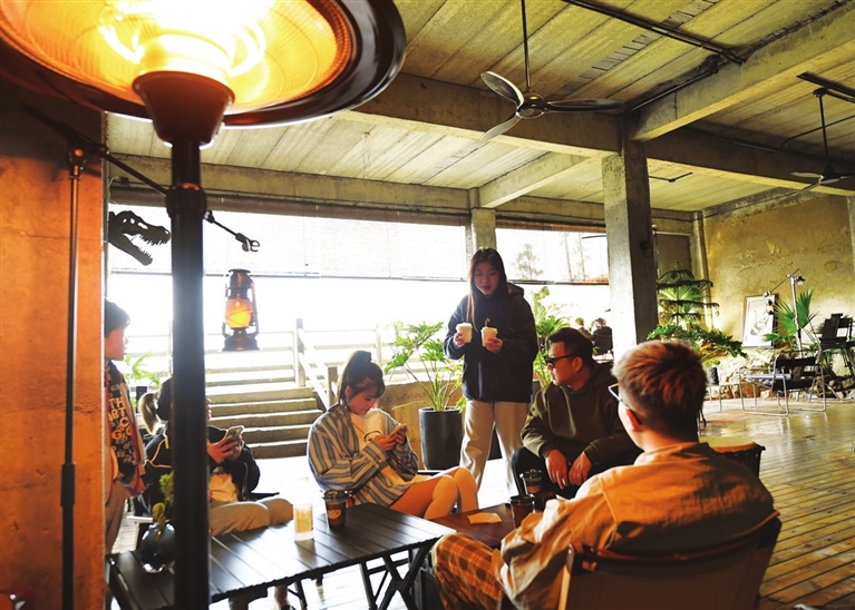 4月7日,游客在安吉县梅溪镇红庙村一咖啡馆休闲。