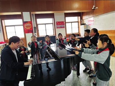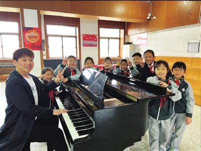 视频中,左边第二排从右数第三位小男孩叫武家逸,今年8岁,是二年四班的学生。他平时喜欢唱歌、棒垒球。“我们都喜欢上秦老师的课。喜欢这种自由自在唱歌的感觉。”武家逸腼腆地说。在音乐课上,秦老师教孩子们节奏训练、视唱、发声练习、有律动的儿歌等。临下课的5至10分钟会分享歌曲,课上认真、表现好的同学可以点一些好听的歌曲分享给大家。通常先听一遍原唱,第二遍秦老师会跟着原唱即兴弹琴。孩子们的学习热情高涨,在快乐的课堂里享受着艺术的熏陶。秦老师重视的不仅仅是音乐,而是每一个孩子的成长,每一个孩子的梦。