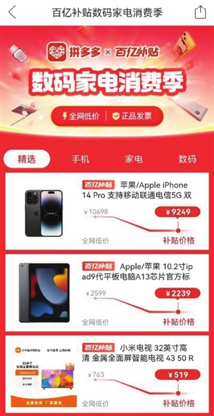 “这次活动均为官方直补,旨在为消费者提供全网最具性价比的产品,无惧比价。”拼多多百亿补贴“数码家电消费季”的项目负责人表示,参与此次活动的也多为品牌旗舰店,官方正品保障,提供正品发票。活动长期在线,消费者随时都可以一站购齐所需产品。