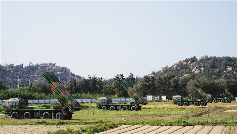联合夺权行动结束后,模拟联合火力打击随即展开。多军兵种部队对台岛及周边海域关键目标实施模拟联合精确打击。