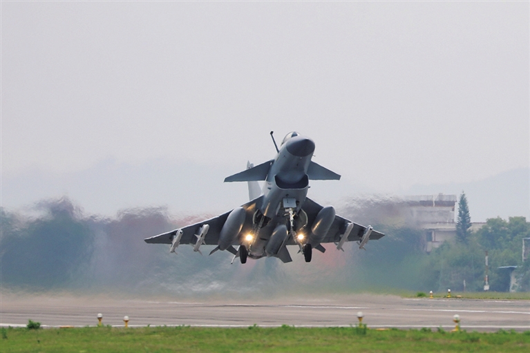 正在台岛以东巡弋待战的海军山东舰航母编队与前出的战区海空力量密切协同,组织区域制空、对海突击、支援策应等课目演练。编队各属舰展开海上布势,执行防空、反潜等任务,歼-15舰载机轮番升空,在演习海域迅速构建起航母编队作战体系。