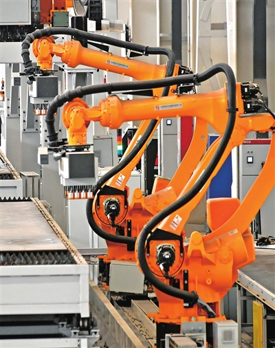 机器人替代人工。在焊接环节,技术人员只需扫描二维码,即可通过“离线编程+3D视觉”技术,对工件所有焊缝进行“一键自动焊接”。结构复杂的工件在这里“一次上机、一次焊成”。