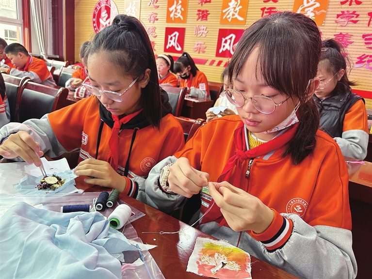 各班选拔出的缝制高手云集,一双双灵巧的小手快乐而紧张地缝制着自己的香包,图案美丽,造型独特。