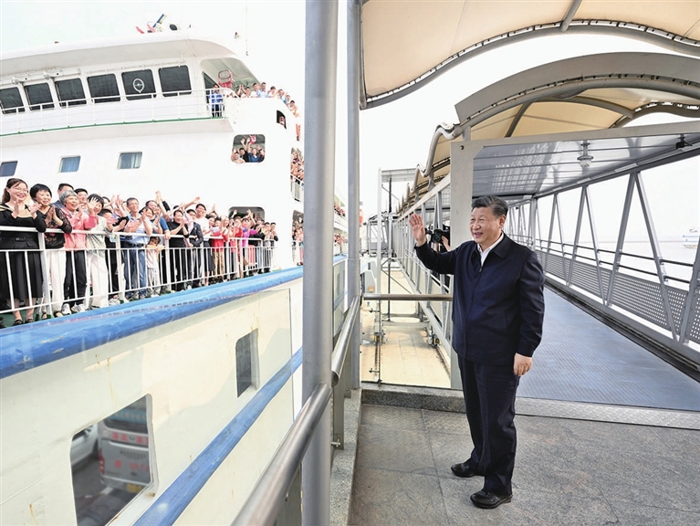 10日下午,习近平来到湛江市徐闻县,考察徐闻港。徐闻港项目是广东与海南相向而行的“头号工程”。在港口专用码头,习近平察看徐闻港全貌,听取广东省提升交通基础设施互联互通水平、对接海南自由贸易港建设相向发展等工作汇报。随后,习近平来到泊位码头,察看船舶停靠、客运转接等。船上的旅客看见总书记来了,纷纷向总书记问好,习近平向大家挥手致意,祝他们一帆风顺。习近平指出,琼州海峡是国家经略南海的战略通道,也是海南自由贸易港建设和发展的咽喉要道,要把“黄金水道”和客货运输最佳通道这篇大文章做好,把徐闻港打造成连接粤港澳大湾区和海南自由贸易港的现代化水陆交通运输综合枢纽。