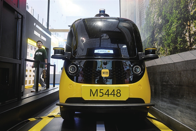 在美团展台,一块“零售大屏”展示了美团在本地生活服务领域的数字化能力,旁边摆放着无人机、自动配送车等设备。美团区域发展合作中心负责人马婧说,前不久,美团无人机城市低空物流解决方案通过中国民航局审定,由此具备了城市级货运航空公司的资质,并初步开启商业化运营。