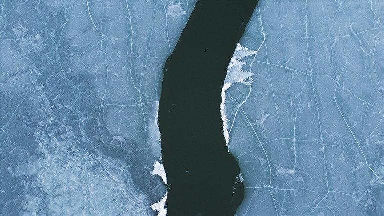 近期,随着天气转暖,位于内蒙古呼伦贝尔大草原腹地的呼伦湖上的冰面开始消融,形成了独特的开湖景观。 新华社 发