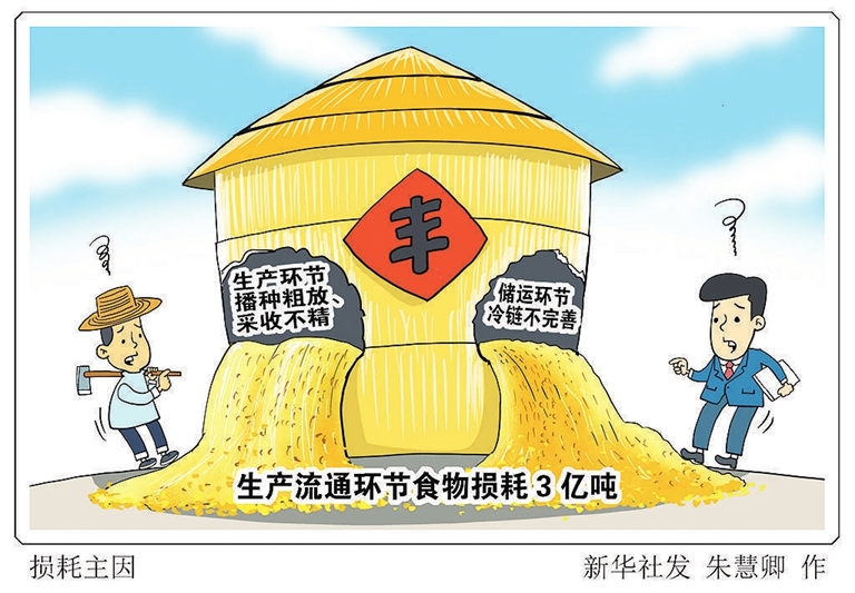 农业农村部食物与营养发展研究所近期一项研究揭示,每年我国蔬菜、水果、水产品、粮食、肉类、奶类、蛋类七大类食物按重量加权平均损耗和浪费率合计22.7%,约4.6亿吨,其中生产流通环节食物损耗3亿吨。“新华视点”记者调查发现,生产环节播种粗放、采收不精,储运环节冷链不完善是造成食物损耗的主要原因。
