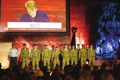 在活动现场,象征着二战期间600万犹太死难者的6支火炬被6名大屠杀幸存者或其家属代表依次点燃。每一支火炬点燃前,幸存者通过大屏幕向公众讲述曾经的苦难故事及如今的生活状况。