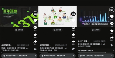 为了让更多人读懂这部获得世界文学界高度美誉但“艰涩到难以读完”的小说,一个名为“1379号观察员”的抖音短视频账号发布了动画连续剧,逐帧解构了这本“大部头”。