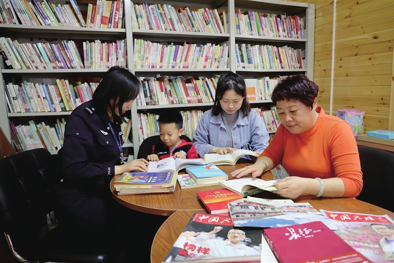 4月19日,山右巷社区联合文庙派出所举行“警民连心品书香”活动。活动中,民警与大家一起诵读经典,分享读书心得。 张昊宇 摄