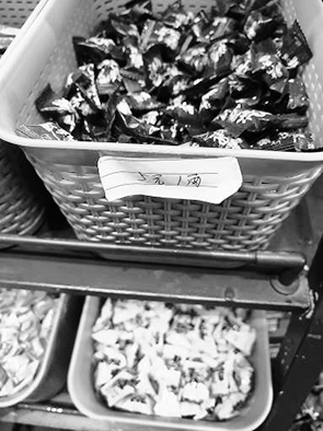 在另一家糖果店,还能看见一种59元/250克的巧克力豆。59元的字体是又大又醒目,250克的字体则是又小又不起眼。记者在收银机上看到,结账的时候,机器屏幕上显示的单价是236元/千克。高价带来的压力,一瞬间扑面而来。