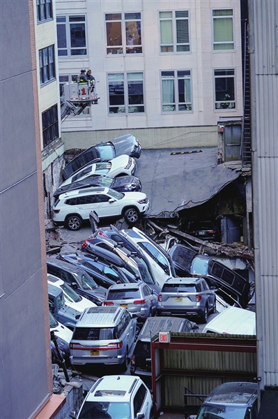 纽约市政官员在事故现场举行的新闻发布会上说,这座四层停车楼位于纽约证券交易所附近的安街,当天下午4时过后不久出现部分坍塌。事故发生时应该有6名工人在楼内工作。