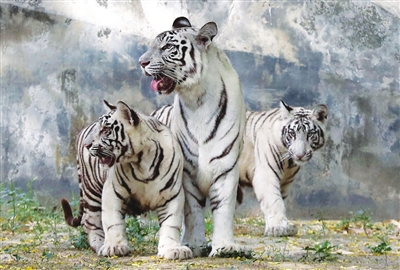 名为“维奥姆”和“阿芙妮”的两只小白虎于2022年8月出生,是新德里国家动物园七年来首次成功繁殖的白虎。