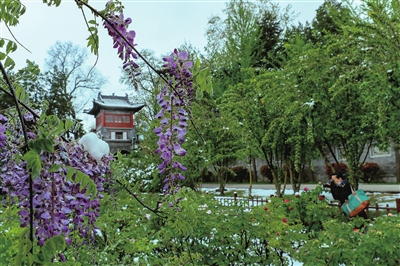 一夜的雨雪为暮春的太原披上了银装。4月22日,市民趁着放晴来到晋祠公园品花赏雪,邂逅雪润花枝的奇妙美景。
