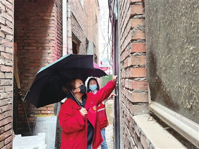 为保障辖区居民雨天生活安全,4月23日,柳巷街道铁匠巷社区工作人员冒雨深入老旧小区、易积水路段展开安全隐患排查,及时处置险情,确保辖区安全。 郭晓华 彭谞璇 摄