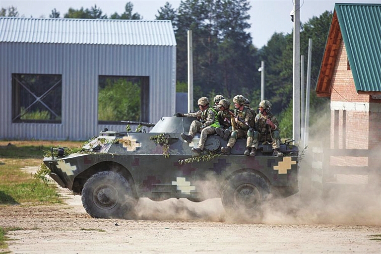 2020年9月17日,乌克兰士兵参加在乌克兰西部利沃夫州举行的代号为“快速三叉戟-2020”的多国联合军事演习。新华社 发