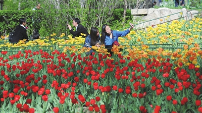 “郁”见花开,“香”约迎泽。近期,迎泽公园里一片姹紫嫣红,尤其湖东岸沿路5000余平方米的郁金香,一簇簇、一层层,粉的、白的、红色、黄的,吸引了大量游客。为此,4月24日到5月3日,迎泽公园举办郁金香花展。同时,公园还有新媒体艺术展、戏曲展演等活动。