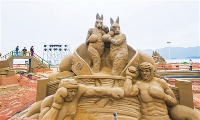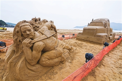 近日,第二十四届舟山国际沙雕节在浙江省舟山市朱家尖南沙景区举行。本届沙雕节以“动感亚运”为主题,展出了50多件沙雕作品,吸引游客前来参观游玩。