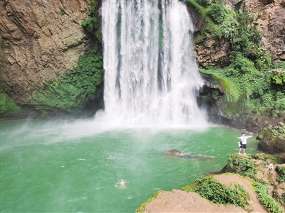 “早上六七点就有游客来,他们过来拍彩虹。”住在附近的村民任波说,瀑布火了以后,沿途10多户人家做起了小生意。停车场老板李发元说,过去交通不便、人迹罕至,现在游客不断,高峰时一天就涌来七八千人。