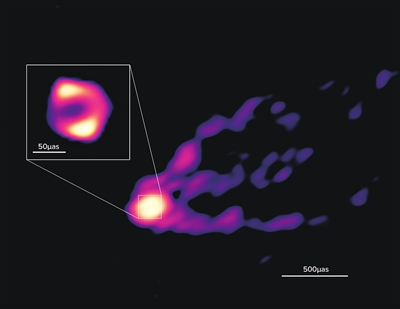 “以前,我们曾在单独的图像中分别看到过黑洞和喷流,这次则是在一个新的波段拍摄了黑洞和喷流的全景图,可以看到喷流是如何从中央超大质量黑洞周围的环状结构中出现的。”路如森说。