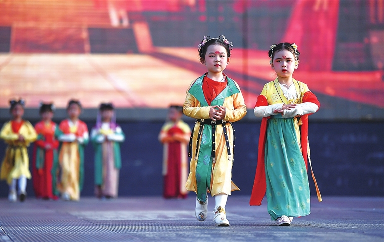 4月25日,华服走秀在西安大唐不夜城步行街举行。