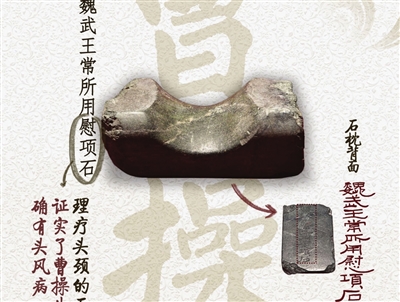 理疗头颈的石枕证实了曹操生前确有头风病,专家推测,该石枕经过加热后,可以起到舒缓头疼的作用。