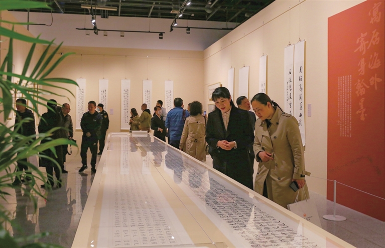 4月28日,“寻根”王纯杰书法艺术展在山西博物院举行。此次展出王纯杰书法及篆刻作品百余件,系统呈现了他的艺术成就。作为海外华人,王纯杰多年来致力于中华传统书法艺术的教育与传播。 张耀森 摄