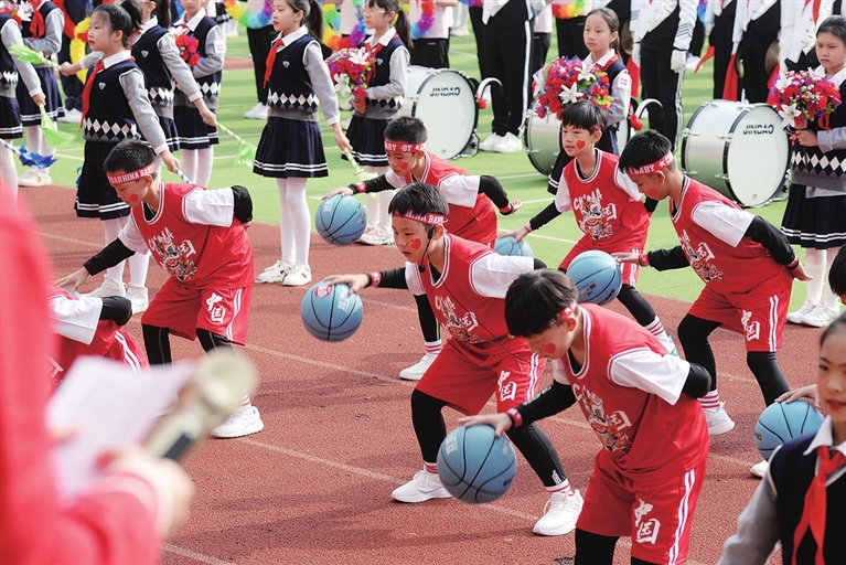 4月27日,双西小学2023年“慧运动”体育节开幕。同学们通过丰富多彩的比赛项目感受运动的乐趣。 牛利敏 摄