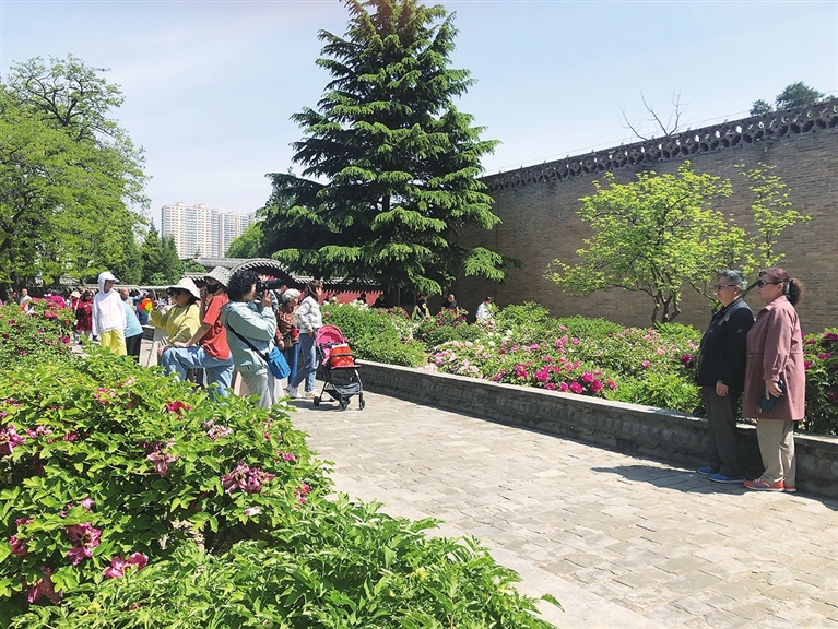 5月1日早晨睡到自然醒,家门口吃完老豆腐、油条,家住杏花岭区的市民高静决定与家人去双塔公园看牡丹。