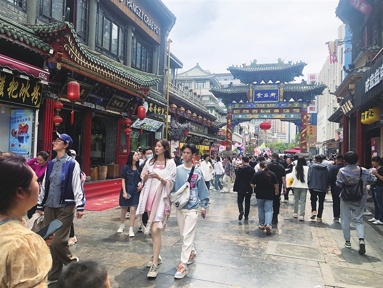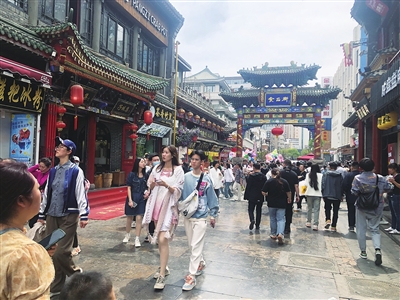 顶住“每逢佳节胖三斤”的压力,在心里对自己说“品尝美食,是对假期最基本的尊重”。然后,带着美美的心情,中午12时许,高静一家来到太原食品街觅食。