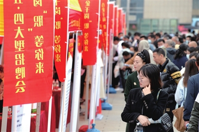 5月4日,由共青团太原市委、市人力资源和社会保障局主办的百企千岗“职”等你来——“五四”大型招聘会在南宫广场举行。此次招聘会搭建了青年就业平台,拓宽了就业渠道。 牛利敏 张昊宇 摄