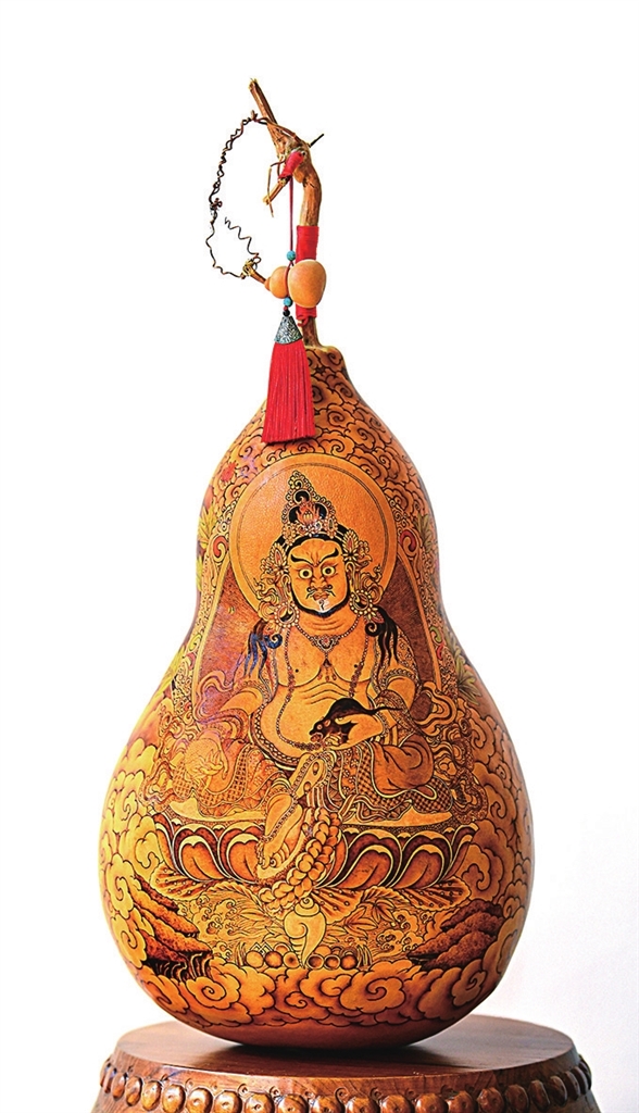 一组组带着拙朴味韵的彩烙葫芦画,为我们呈现了中国传统文化的奇光;一件件造型独特的葫芦,为我们撑架起远古传说的异彩。