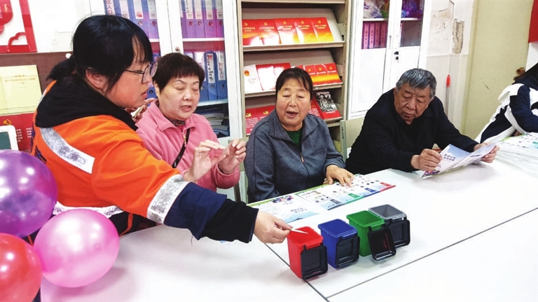 活动现场,社区工作人员、垃圾分类宣导员向居民发放垃圾分类宣传单,并详细讲解垃圾如何分类投放、垃圾分类投放的意义。随后,社区还开展垃圾分类小游戏、知识抢答、手把手教学等活动。居民踊跃参与,现场气氛热烈。活动结束时,工作人员还向垃圾分类知识抢答获胜的居民发放了小礼品。