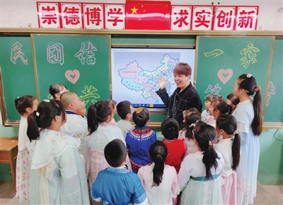“在我国960万平方公里土地上,各民族团结友爱,共同建设着祖国,共同创造了祖国的灿烂文化,才使我们的祖国母亲变得富强而美丽。”主题班会上,老师讲得绘声绘色,赢得了同学们的阵阵掌声。该校精心设计主题活动内容,通过视频、歌曲、小游戏等多种形式,让学生了解各民族习俗和文化,营造了浓厚的教育氛围。老师和同学们还分享了感人的民族故事,每位学生都深受感动,大家都说,要成为维护国家统一、维护民族团结、维护社会稳定的新时代好少年。