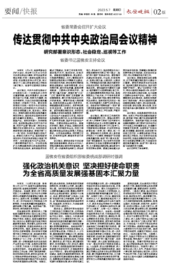强化政治机关意识 坚决担好使命职责 为全省高质量发展强基固本汇聚力量