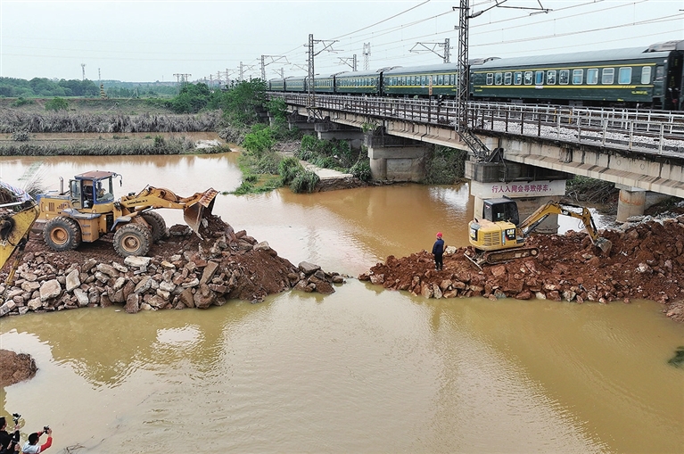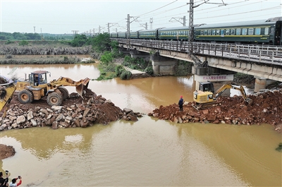 6日7时许,受强降雨影响,江西省丰城市境内万亩河堤清丰堤遇漫堤险情后溃口,溃口长度迅速扩大至近30米,附近村庄220名群众被困,溃口处于京九线铁路桥下方。
