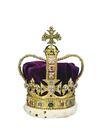 在加冕仪式的高潮,英格兰圣公会坎特伯雷大主教把圣爱德华王冠戴在查尔斯的头上。该王冠上有四个十字架和四个鸢尾花,以及两个拱门。顶部有一个球体和一个十字架,象征着基督教世界。王冠的黄金框架衬有红宝石、紫水晶、蓝宝石、石榴石、黄玉和碧玺。它有一个天鹅绒帽,头带由貂皮制成。