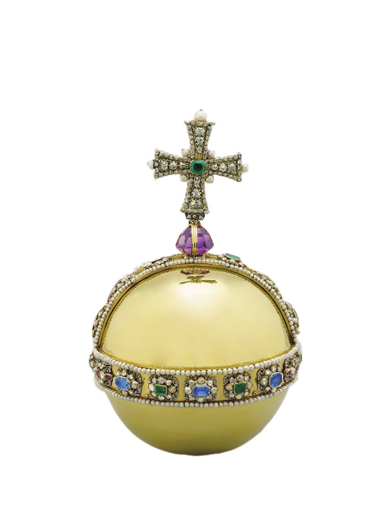 君主的宝珠也在加冕典礼上出现,它是主权者权力的代表,制作于1661年。宝珠象征着基督教世界,它的十字架安装在地球仪上,将宝珠分成三个部分的珠宝带代表中世纪已知的三大洲。
